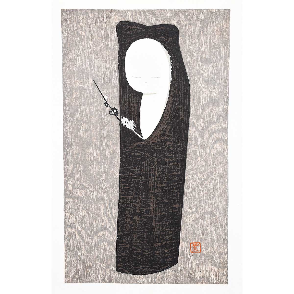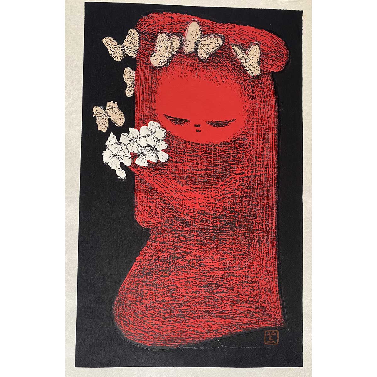 Kaoru Kawano (1916-1965). Japanese. Woodblock prints on woven paper. Numerous framed and unframed prints available in addtion to those pictured. First work was accepted for the Japan Print Association exhibited in 1944, but he was drafted and then taken as a prisoner of war and held in Siberia. Began to exhibit again in 1949. In 1952, he began to exhibit with the Kokugakai, and in 1954 won a Kokugakai award. Represented at a serigraph exhibition in New York and other exhibitions from Chicago to Yugoslavia and elsewhere. Kawano was a leading artist in the Sosaku hanga movement which brought Japan's centuries old traditional medium of wood block printing into the modern age. Member, Japan Print Association. Associate Member, Kokugakai. "Born in Otaru, Hokkaido, studied at Kawabata art school and became one of the leading Sosaku hanga artists (known because they designed, cut and printed their own blocks). By 1960 had major shows in the US (Seattle, New Yok and Chicago)." ---Selected Woodcuts, Jack Leissring