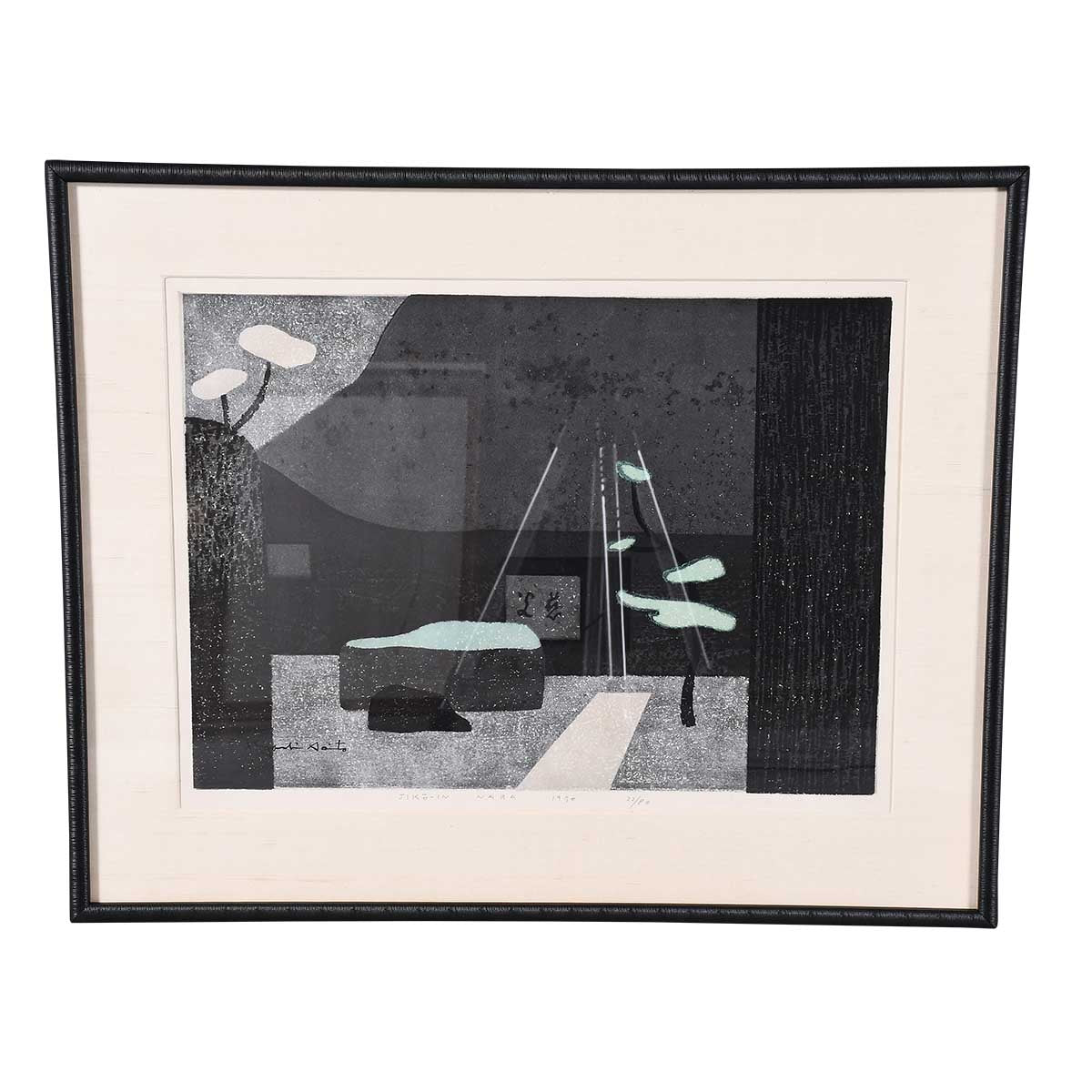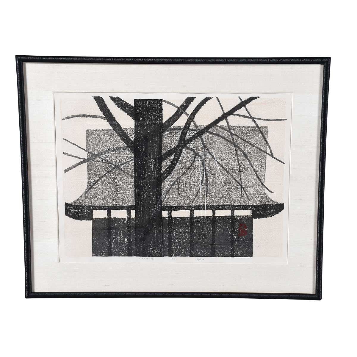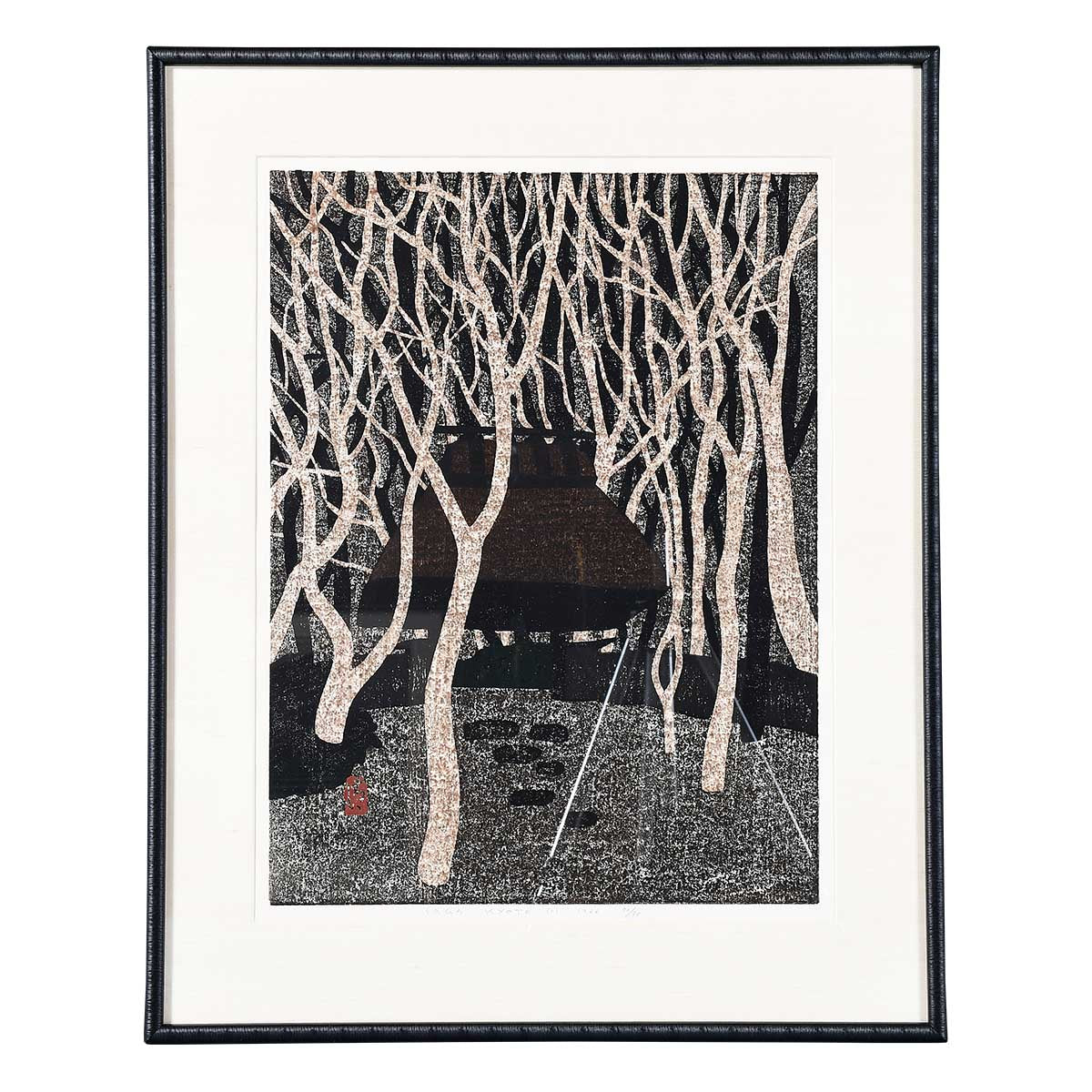 Framed Japanese woodblock prints by Kiyoshi Saito. Born in Aizubange, Saito was a leading member of the sosaku hanga movement of wood block artists who designed, cut, and printed their own works. His work blends the traditional with modern elements. Current available titles include Castle, Saga Kyoto, Jiko in Nara, and Winter in Nikko (Jyogyodo). Priced individually. Please contact us for sizes, pricing, and additional available prints.
