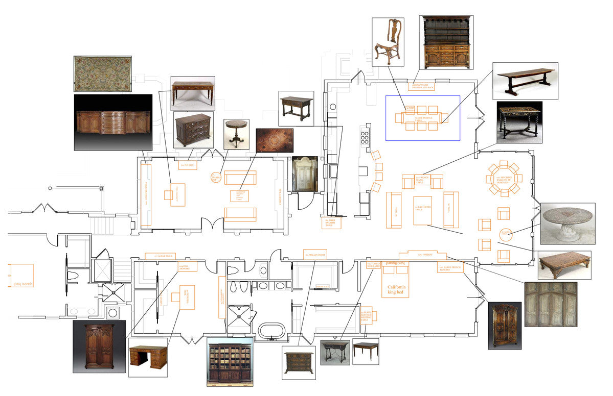 By using AutoCAD we help both designers and clients scale in the clients existing furniture as well as ideas for new pieces. By including pictures of the furniture on the floor plan, the client is able to imagine the space more easily.